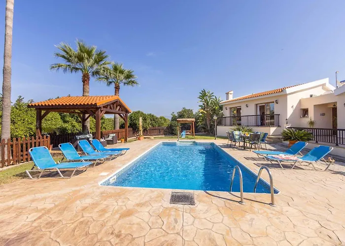 Do dyspozycji Gości jest pełnowymiarowa kuchnia z podstawowymi udogodnieniami, takimi jak lodówka i piekarnik. Goście mogą z łatwością dotrzeć na lotnisko Pafos, położone 55 km od willi. Willa dysponuje słonecznym patio, na którym można zrelaksować się po męczącym dniu, a także zewnętrzny basen.